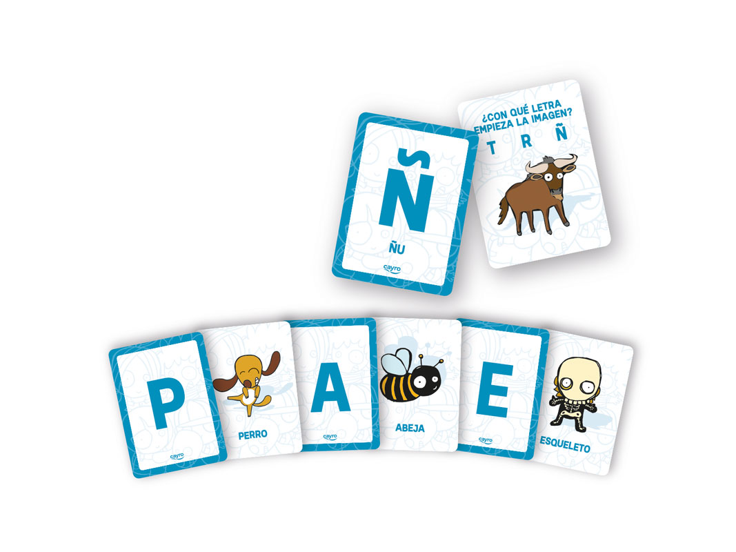 Juego de cartas para niños a partir de 4 años para asociar letras y dibujos. Las cartas son reversibles y por un lado aparecen objetos perfectamente reconocibles por los más pequeños y por el otro la respuesta con el letra por la que empieza la palabra. La mejor manera de aprender divirtiéndose. Contiene 50 tarjetas