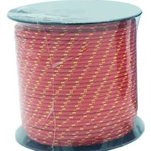 Cordón de 2,5 mm de calibre a base de fibra sintética trenzada. También se le conoce como cordón de montaña o paracord por su uso en escalada. Disponible en varios colores en bobinas de 100 m.