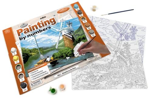 Soportes de pintura preparados para pintar por números. De la marca Royal & Langnickel. Cada número se corresponde con un color para facilitar la labor. Formato: 31,5×40 cm. Contenido: 10 botecitos acrÃlicos de 3 ml, 1 pincel y lámina prediseñada