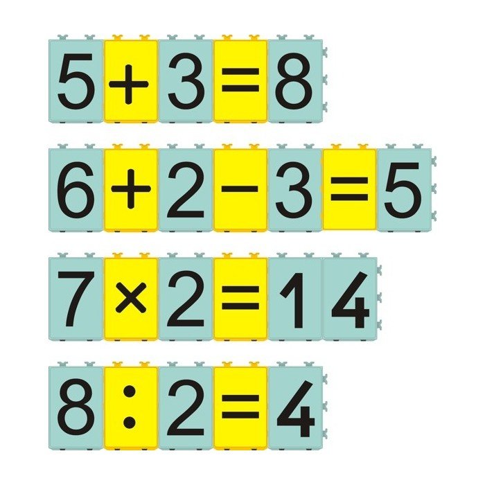 AL TENER 3 LADOS EN LUGAR DE 2, OFRECE MAS POSIBILIDADES DE COMBINACION QUE EL DOMINO. HAY QUE ASOCIAR DOS OPERACIONES CON EL MISMO RESULTADO. 28 FICHAS TRIANGULARES DE PLASTICO LAVABLE DE 65MM